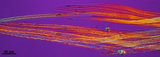 Polarised light microscopy images of tīkouka, Cordyline australis (a) and harakeke, Phormium tenax (b)